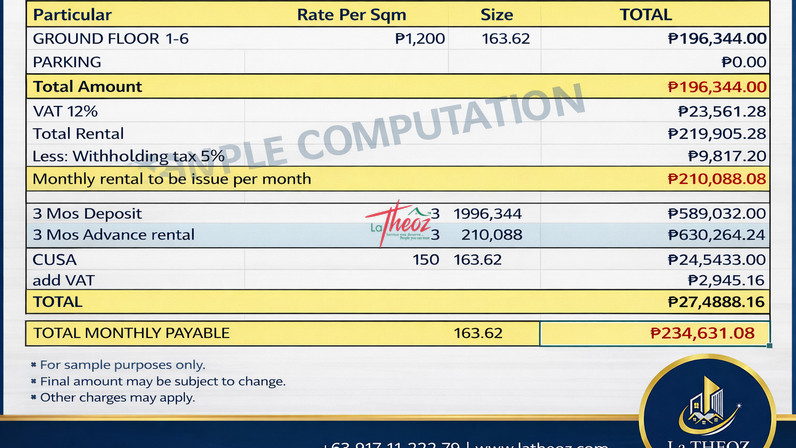 A rare 163 SQM ground floor unit inside a multi-level corporate building with office tenants up to the 12th floor — meaning built-in foot traffic, captive market, and long-term business ecosystem.