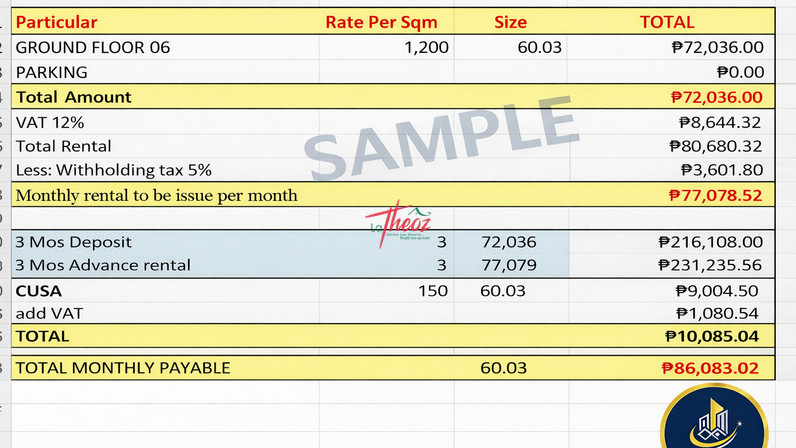 A rare 60 SQM ground floor unit inside a multi-level corporate building with office tenants up to the 12th floor — meaning built-in foot traffic, captive market, and long-term business ecosystem.